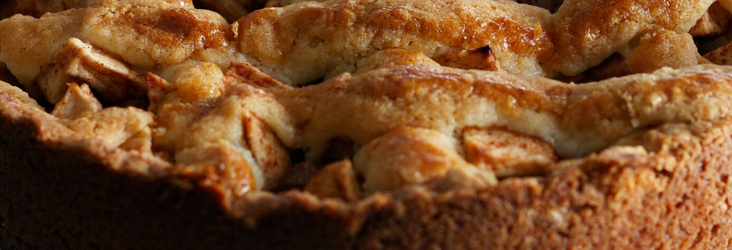 Verwarm de oven voor op 175 graden voor een hete luchtoven. Was dan de rozijnen en laat ze in een zeef uit lekken. Kneed de eerste 4 ingrediënten tot het goed door elkaar zit. Lekker is wat geraspte citroenschil daardoor. Vervolgens de appels raspen. Er kan wat citroensap doorheen gedaan worden voor de smaak en om het bruin worden van de appels tegen te gaan. Dan wat suiker, kaneel en de rozijnen er doorheen doen. De hoeveelheden zijn naar eigen smaak toe te voegen.Vet de bakvorm in en bedek de bodem eventueel met bakpapier. Gebruik een groot deel van het deeg om de bodem en zijkant van de vorm te bekleden, met een dikte van ongeveer 1 cm. Strooi vervolgens wat paneermeel op de bodem zodat het vocht uit de appels opgenomen kan worden. Vul vervolgens het bakblik met het appelmengsel. Bedek de bovenkant met slierten deeg in een geruit patroon. Daarna kan de taart de oven in.